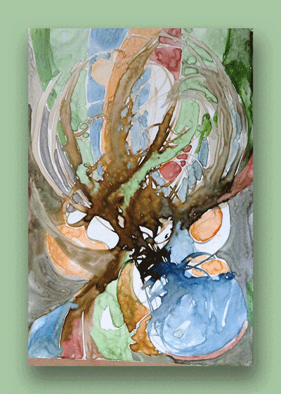 This painting is also on Yupo paper, it prints nicely on Lustre coat paper or metalic paper To me I see a skull. what do you see? I like the colors. Print sizes: from 5x7 to 16x24