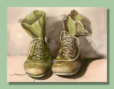 I met a youg man who was wearing these boots, I said, I would love to paint your boots, he smiled and nothing more was said. The next morning they were on my front door steps.